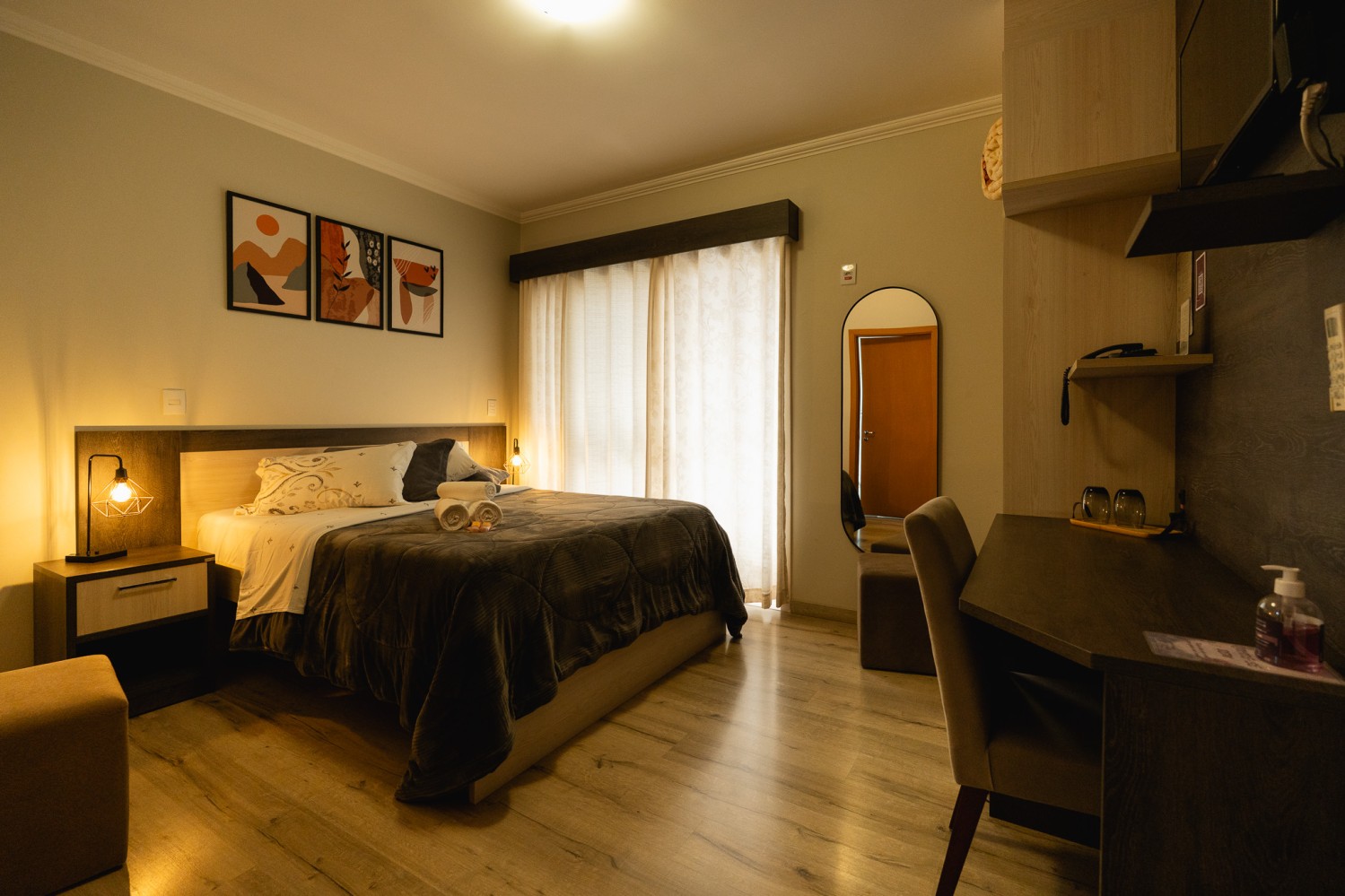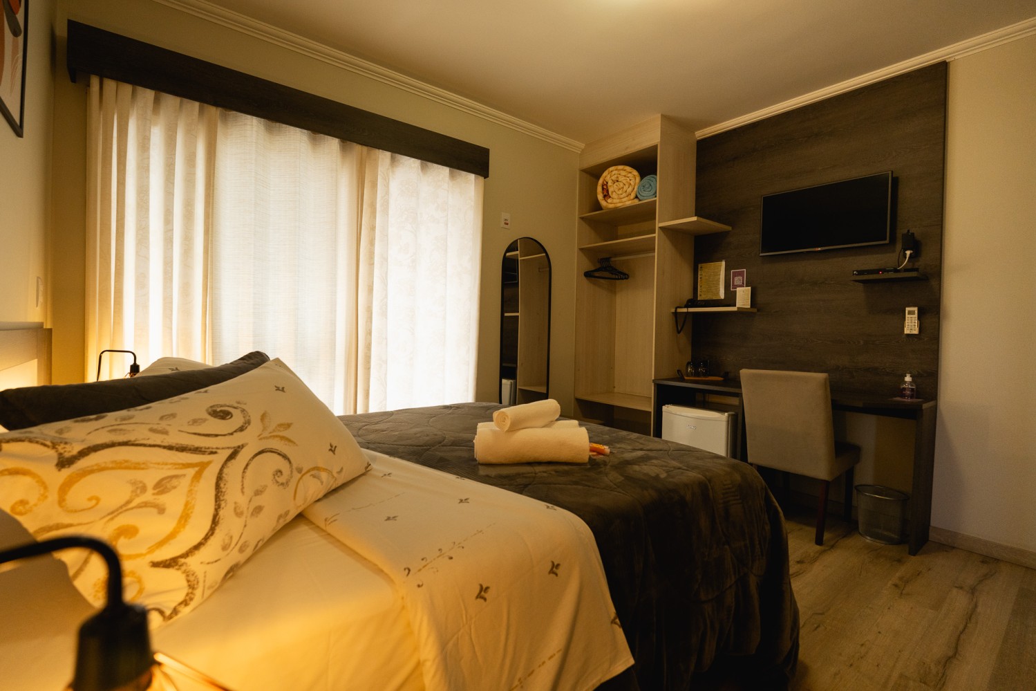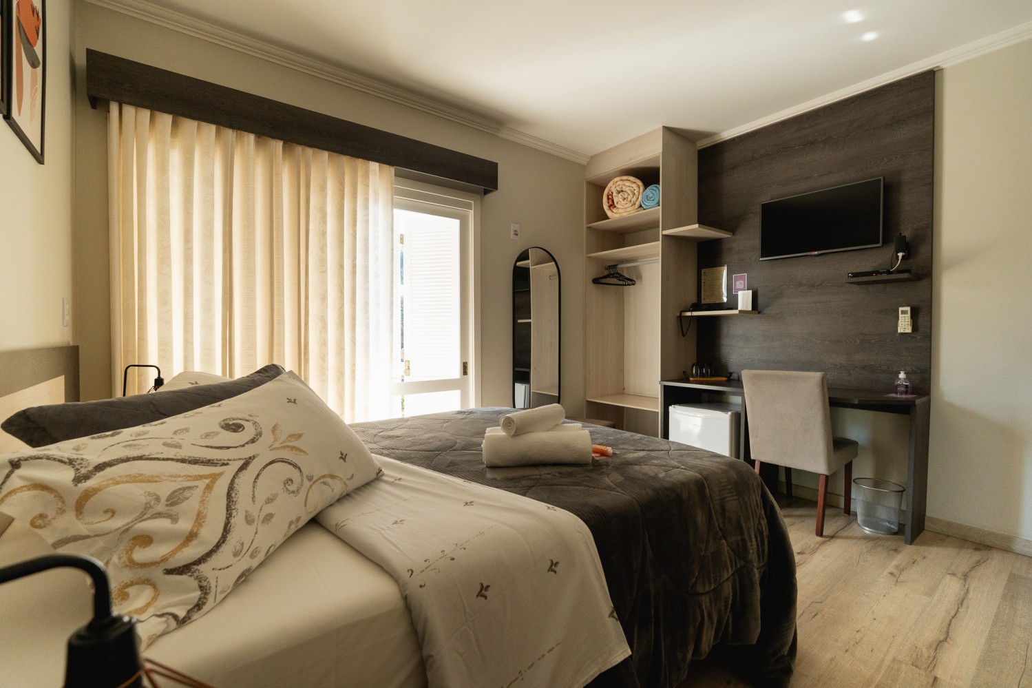 Nossas acomodações se refletem em espaços modernos, confortáveis, organizados e funcionais! Enquanto a luz natural, a tranquilidade e o aconchego completam o cenário, o acolhimento vem dos detalhes pensados para proporcionar uma experiência de estadia única e inesquecível!