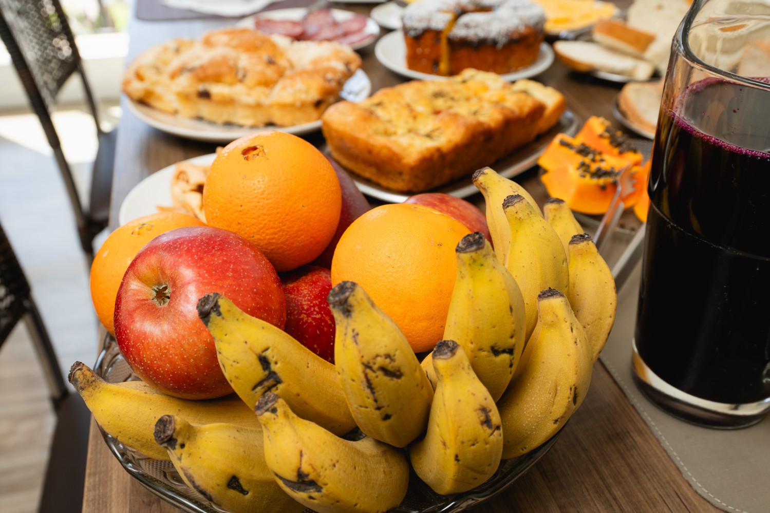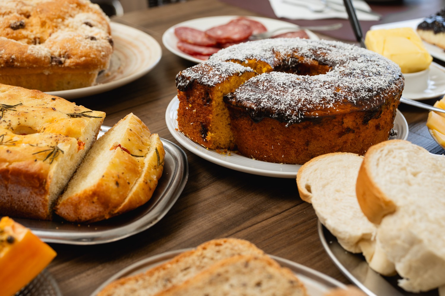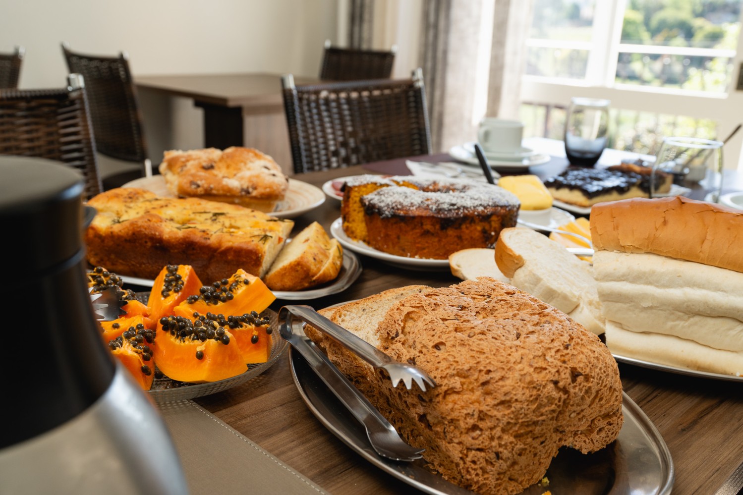 Aqui o café da manhã ganha ainda mais sabor com uma cuidadosa seleção de pães frescos, bolos caseiros, geleias artesanais, queijos típicos da região, frios, cucas, grostoli, biscoitos, nata, café, leite, sucos e frutas da estação! Tudo cuidadosamente elaborado pelas mãos da família!